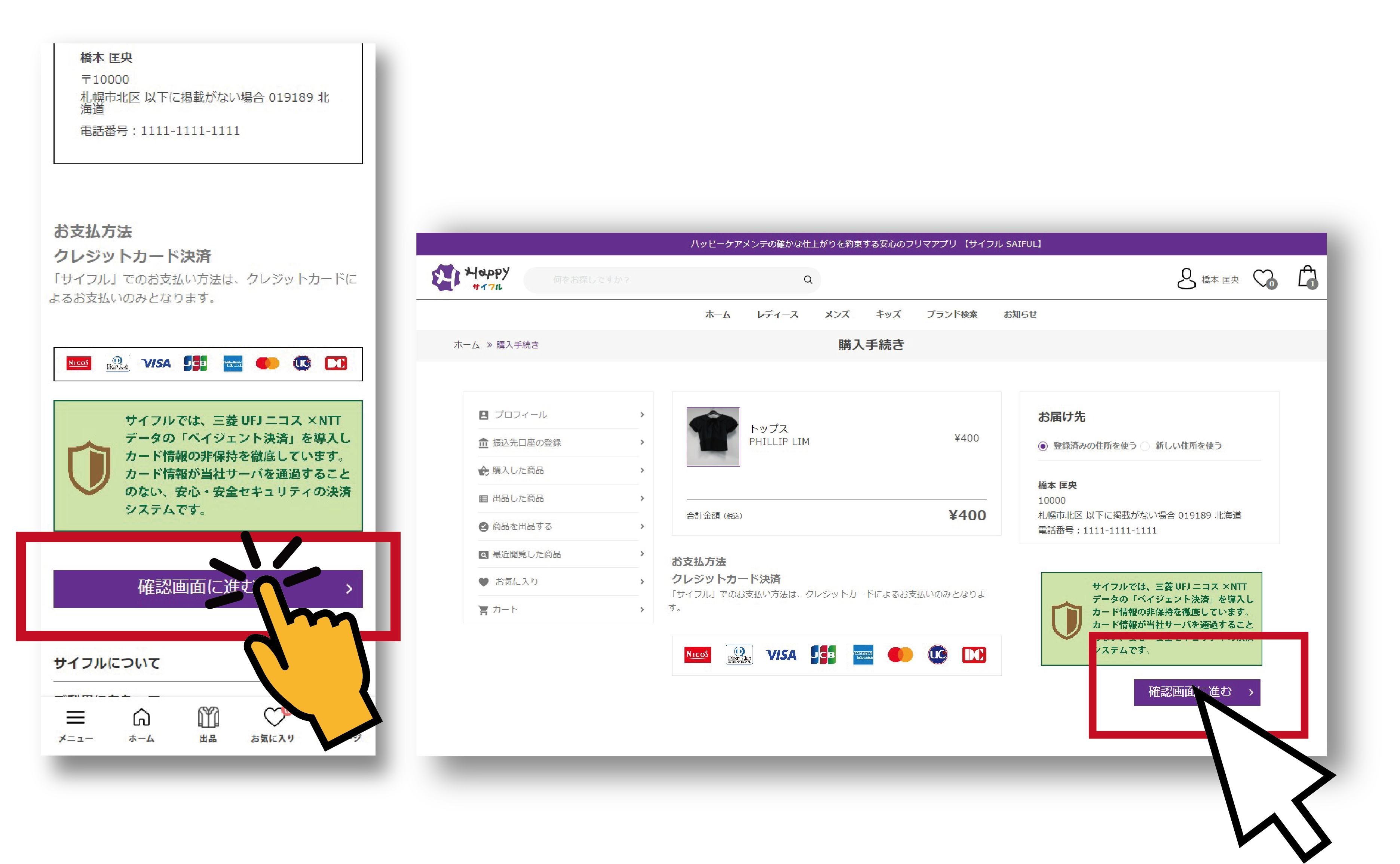 「購入手続き」ページ